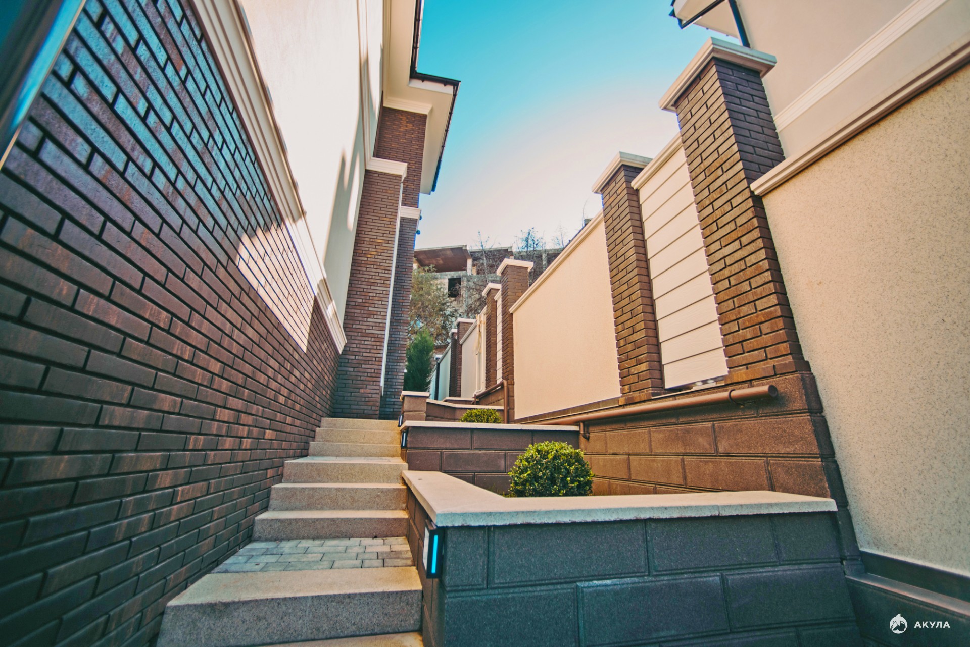 Установлена система «Умный дом» - управление рольставнями, шторами, освещением, кондиционерами, теплым полом, газовым котлом, датчиками протечки воды, охранной и пожарной сигнализации.