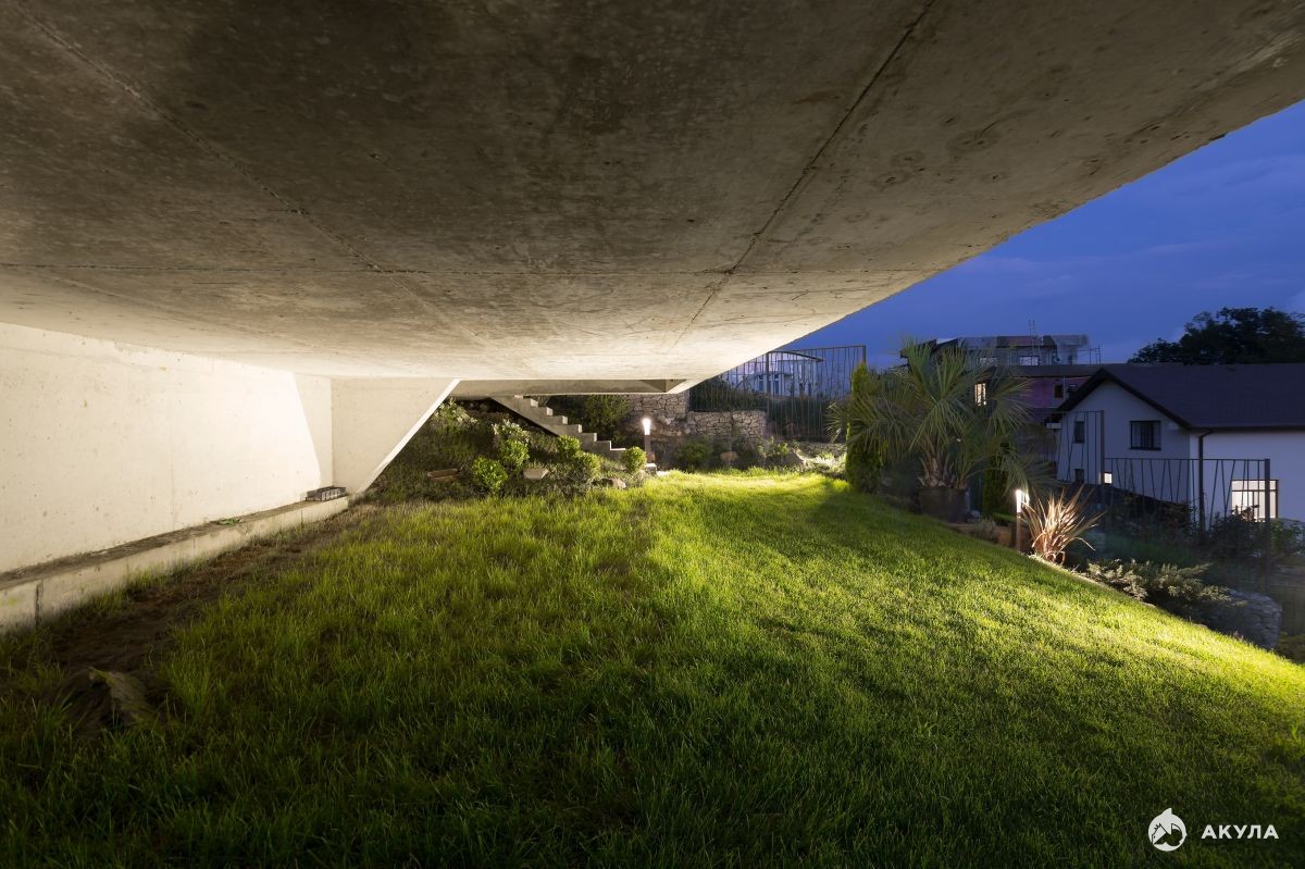 Раздвижной фасад, потолки 3.8 метра, сауна, место под камин, возможность использования эксплуатируемой кровли.