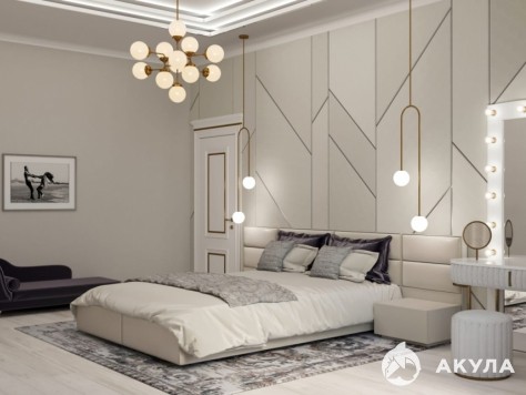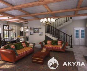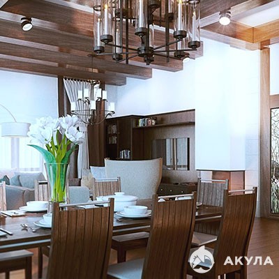 Коттедж расположен в эко-поселке. Выполнен в современном стиле, два этажа.