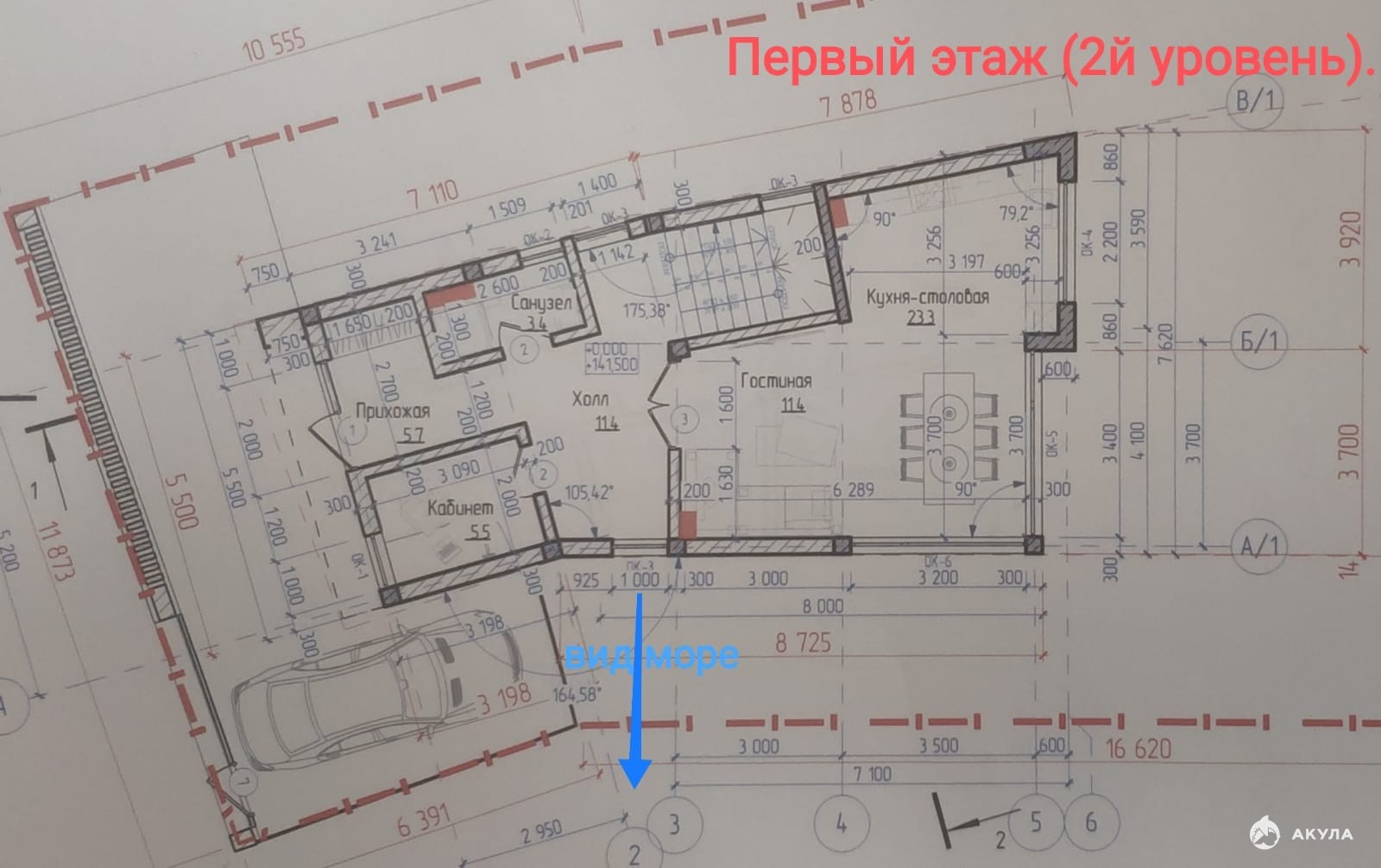 - Первый этаж: кухня-гостиная, кабинет, с\у.