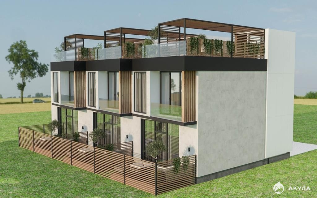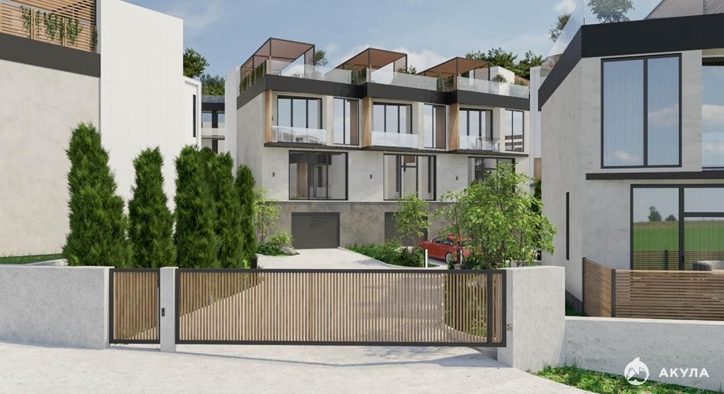 К продаже представлен таунхаус жилой площадью 200 квадратных метров с индивидуальным участком, эксплуатируемой кровлей и личным гаражом.