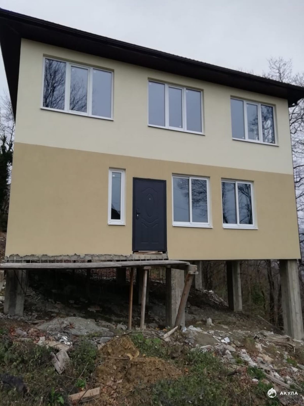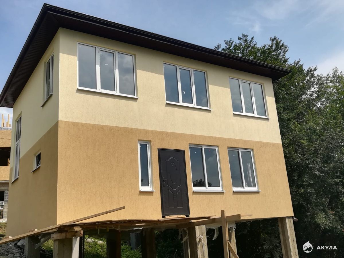 Продаётся двухэтажный дом 7Х9 (120 м² + цоколь = 180м²) на участке 4 сотки. Строительство велось с разрешением администрации города. Дом узаконен, получен адрес, прописка.