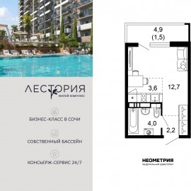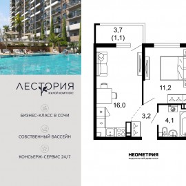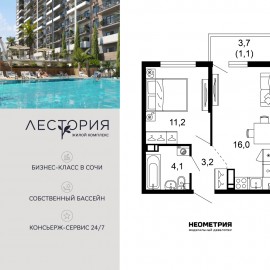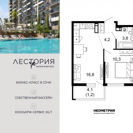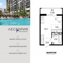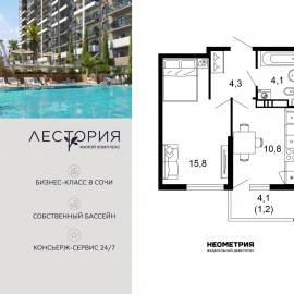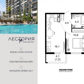 Продается квартира в жилом комплексе бизнес-класса «Лестория». В составе ЖК предусмотрена собственная аквазона площадью 473 квадратных метра с двумя подогреваемыми бассейнами, что соответствуют стандартам бизнес-класса. Аквазона объединяет взрослый и детский бассейны....