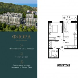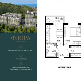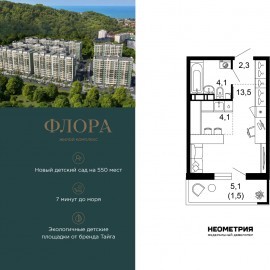 Продается квартира в ЖК «Флора» от федерального девелопера «Неометрия». Это жилой комплекс комфорт-класса в самом зеленом районе Сочи. При проектировании постарались максимально сохранить окружающую флору и фауну. Теплое море, горы, целебные источники, река, близость...