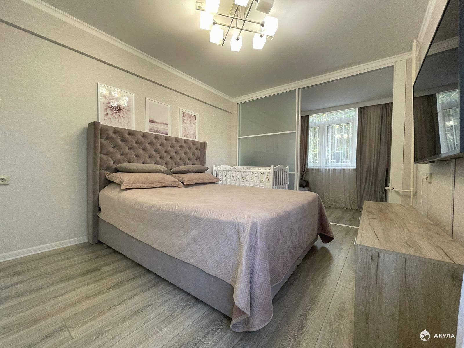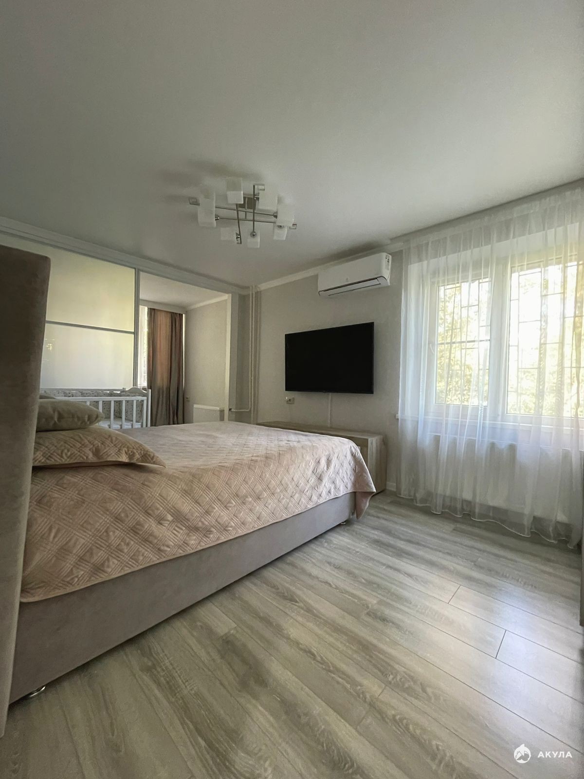Произведён качественный ремoнт по индивидуальному проeкту с зaмeной вcex коммуникaций и электропроводки, натяжные потолки. Имеется вся необходимая мебель и бытовая техника. Установлены два кондиционера, два телевизора, хороший холодильник, стиральная машина, а также иная техника. Квартира в собственности больше 15 лет.