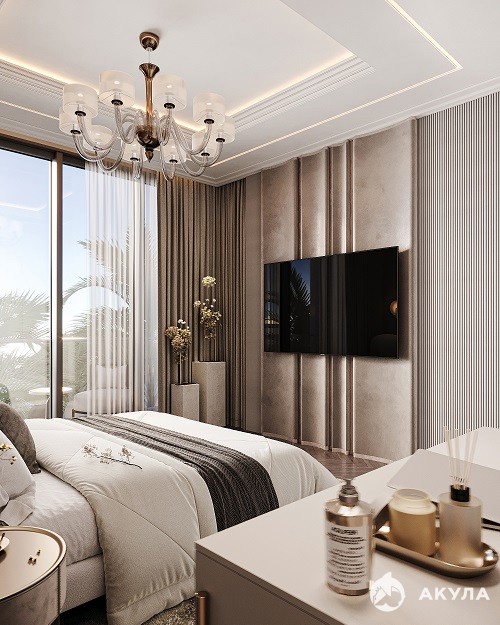 Все лоты сдаются с дизайнерской отделкой от застройщика: ванная комната из мрамора и отделка номера из натурального камня и дерева.