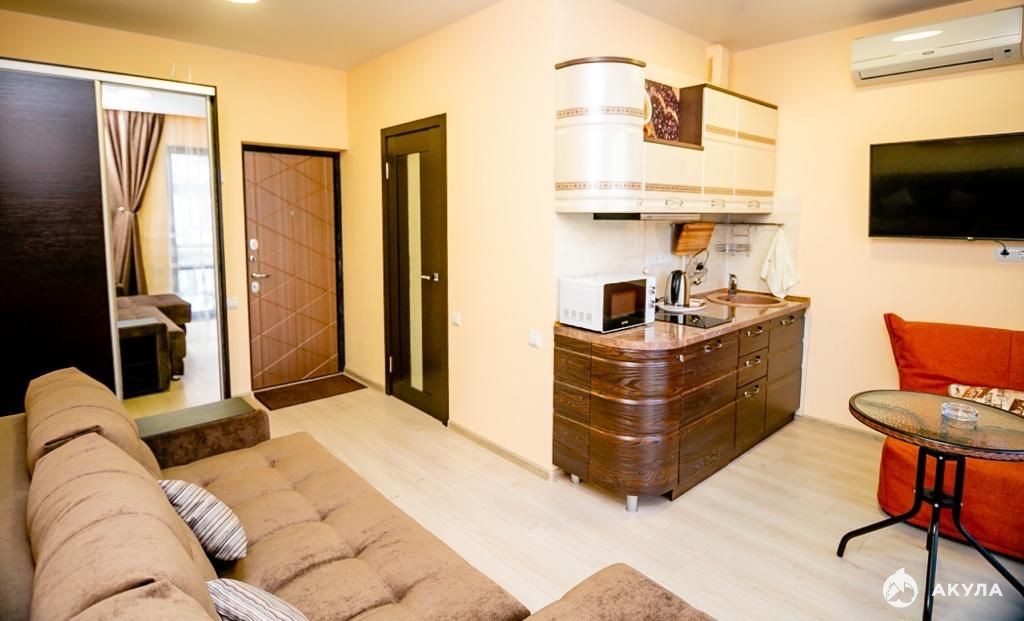 Апартаменты-студия 27 м2 с хорошим видом во двор, с панорамным видом из окна, с уютным балконом. Этот апартамент идеально подходит для круглогодичной аренды и отдыха на море. Выполнен качественный ремонт, хорошие мебель и техника. Находится на закрытой охраняемой и благоустроенной территории с видеонаблюдением. На территории есть бассейн, парковочные места, места отдыха. В шаговой доступности красивый парк, до пляжа несколько минут пешком, океанариум и дельфинарий, аквапарк - всё в близкой пешей доступности.Номер объекта: #5/556164/11901