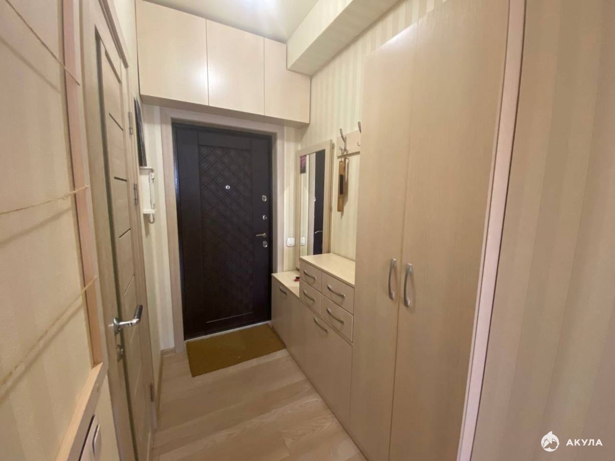 В квартире встроенный шкаф-купе, встроенная кухня, оборудованная прихожая, все сделано под заказ из качественных материалов.