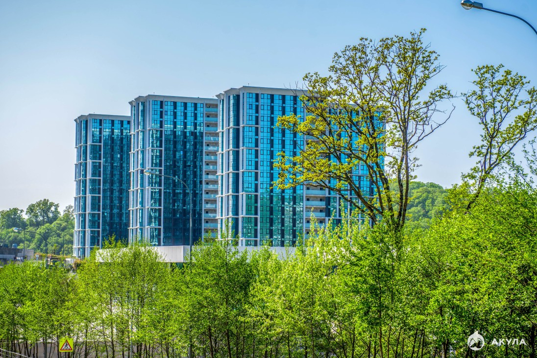 Предусмотрен торговый центр площадью 4900 м2, который разместится на последнем этаже многоуровневого паркинга. Отдельной изюминкой являются замечательные видовые характеристики из всех квартир: витражное, панорамное остекление позволит в полной мере оценить виды на море, город и горы заснеженного Кавказского хребта в сторону Красной Поляны.