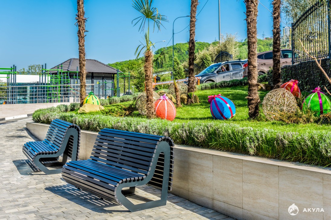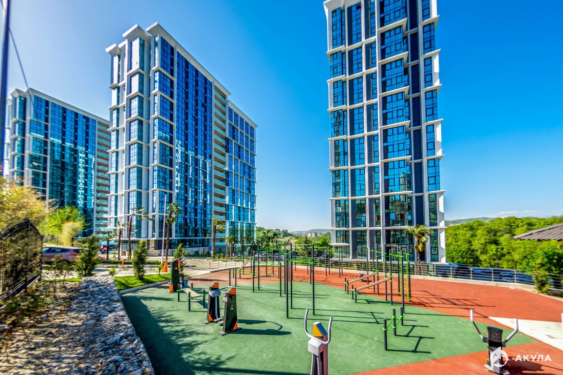 Предусмотрен торговый центр площадью 4900 м2, который разместится на последнем этаже многоуровневого паркинга. Отдельной изюминкой являются замечательные видовые характеристики из всех квартир: витражное, панорамное остекление позволит в полной мере оценить виды на море, город и горы заснеженного Кавказского хребта в сторону Красной Поляны.