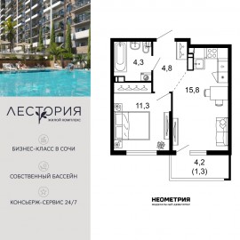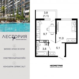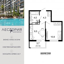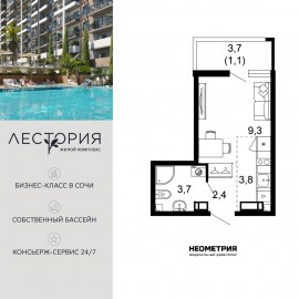 Продается квартира в жилом комплексе бизнес-класса «Лестория». В составе ЖК предусмотрена собственная аквазона площадью 473 квадратных метра с двумя подогреваемыми бассейнами, что соответствуют стандартам бизнес-класса. Аквазона объединяет взрослый и детский бассейны....