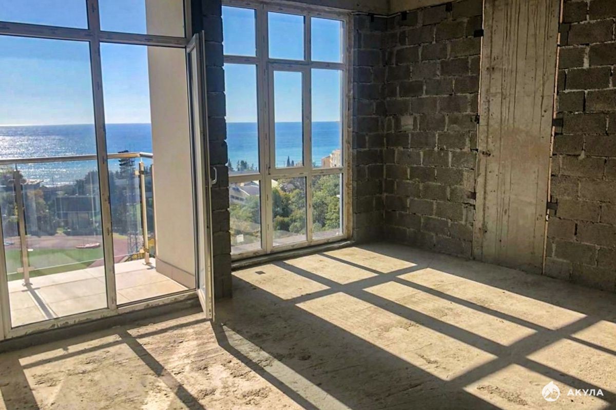 Квартира в черновой отделке, выполнено панорамное остекление. Вид на море. Статус «квартира».