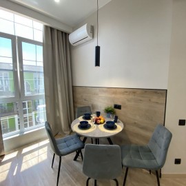 Продажа апартамента с ремонтом в новом апартаментном комплексе Бизнес-класса МАДРИД-ПАРК. Апартаменты-студия 27 м2 с хорошим видом во двор, с панорамным видом из окна, с уютным балконом. Этот апартамент идеально подходит для круглогодичной аренды и отдыха на море. Выполнен...