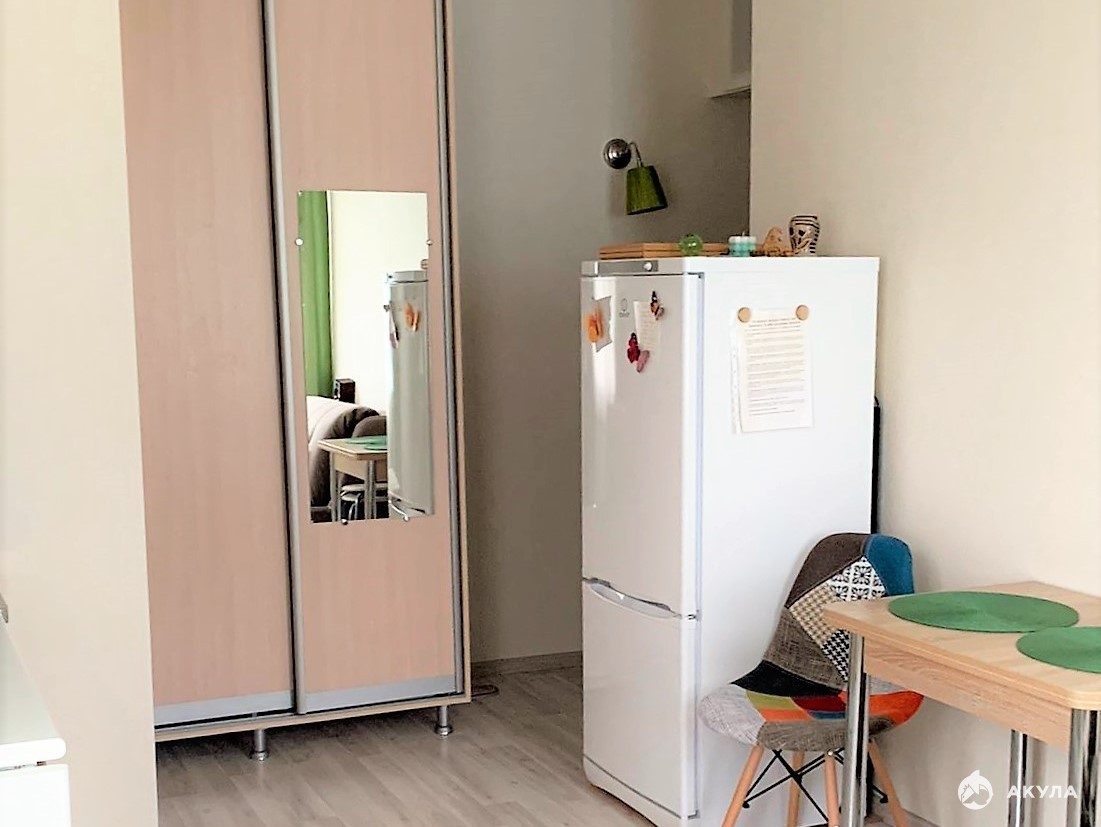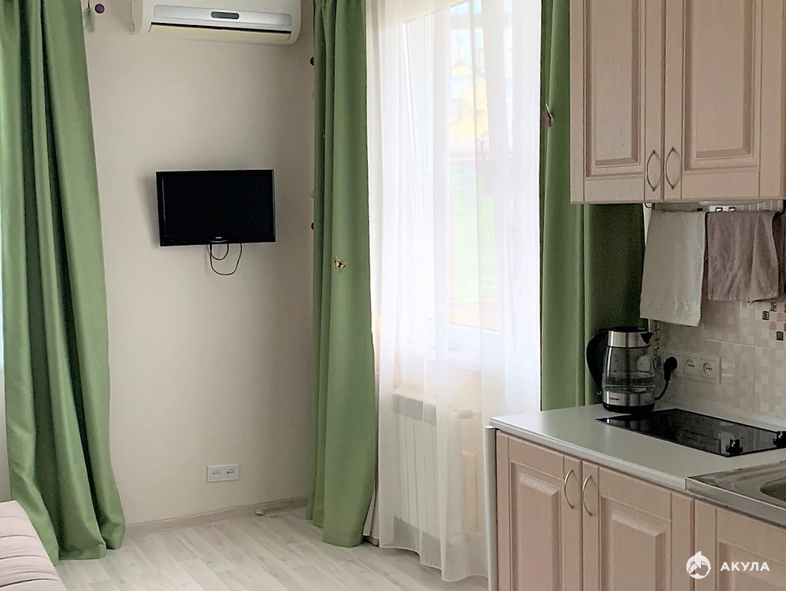 Уютная студия с открытым балконом. Дом расположен в микрорайоне Соболевка, 3 км от моря. В студии свежий ремонт,