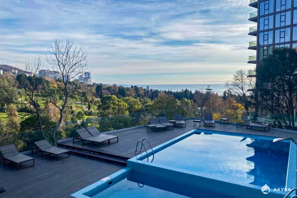 Закрытая клубная охраняемая территория общей площадью 6000 кв.м. Ландшафтное озеленение, бассейн, лаундж-зона с беседками и барбекю, детский комплекс.