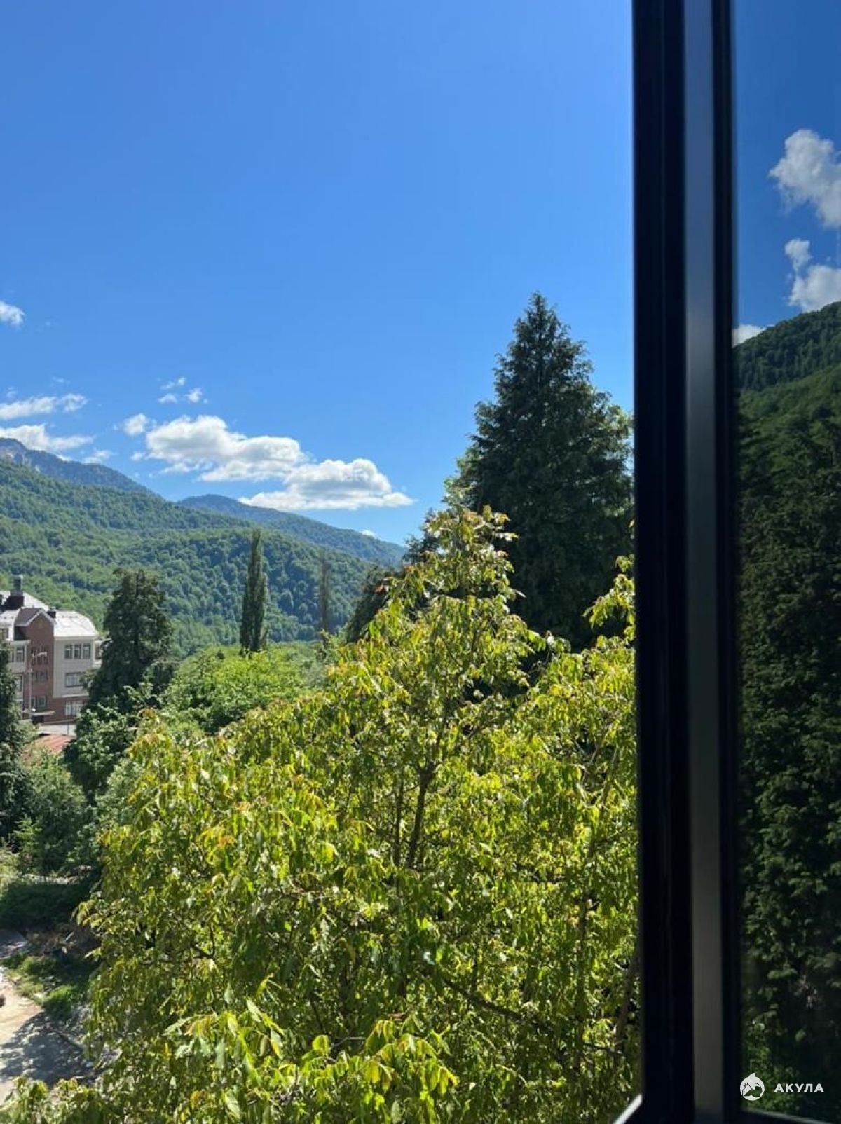 Из окон открываются белоснежные горные вершины Кавказского хребта.