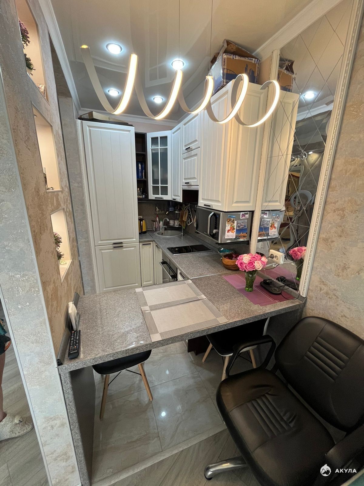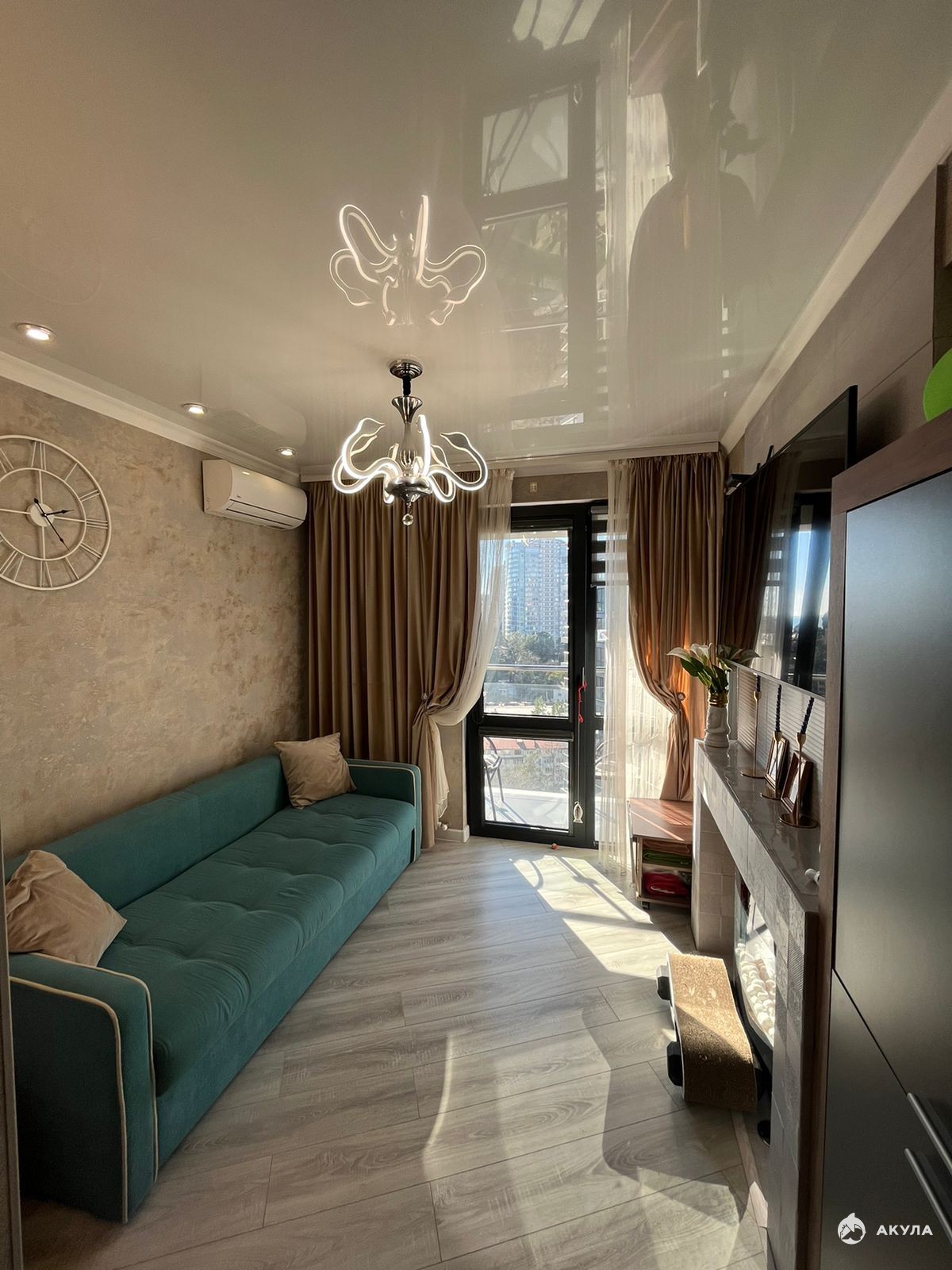 1-комнатную квартира - студия. Площадью 30 кв. м с лоджией на 10 этаже 13 этажного дома. Комплекс бизнес класса расположен в самом центре города. Все достопримечательности города в шаговой доступности. Прогулочная улица Навагинская, Морской порт, Центральная набережная. В квартире делали ремонт для себя. Качественный ремонт, мебель, техника.