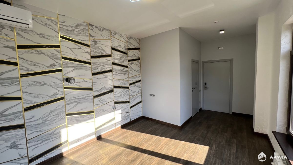 Апартамент оформлен в стиле нового минимализма с использованием современных материалов. Уютная придомовая территория оборудована бассейном и зоной отдыха.