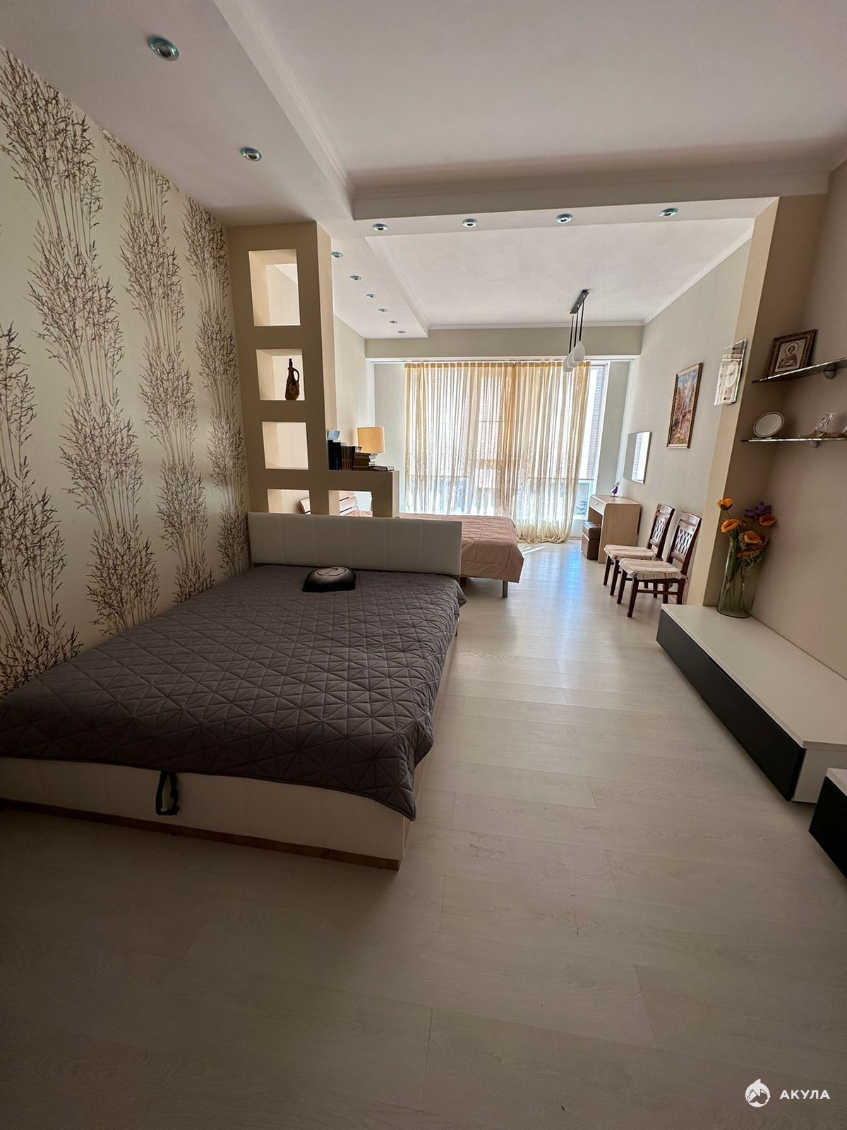 Квартира распланирована в большую комнату-спальню, кухня гостиная с выходом на террасу 8м2, и просторная ванная комната. Вся мебель и техника остается.