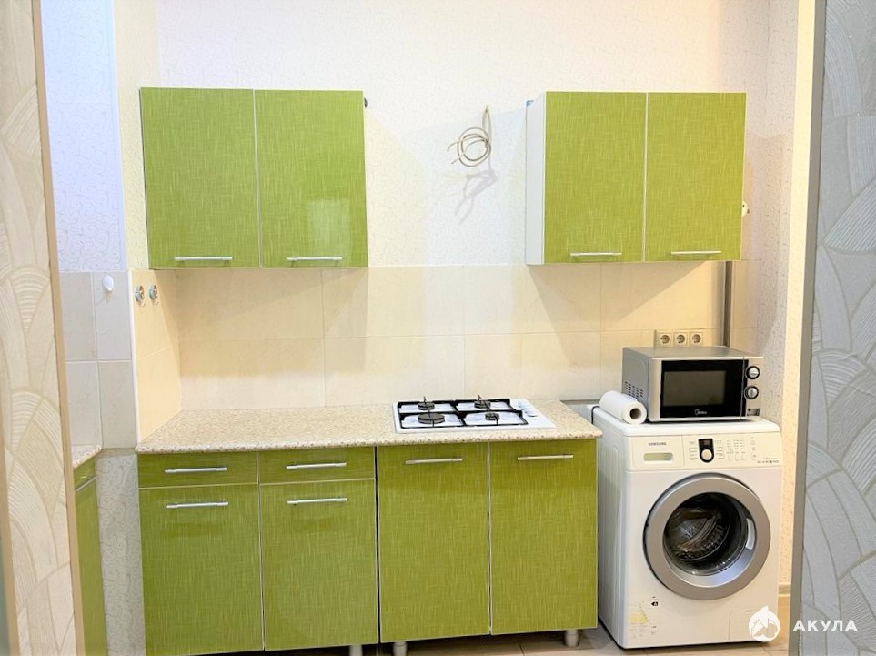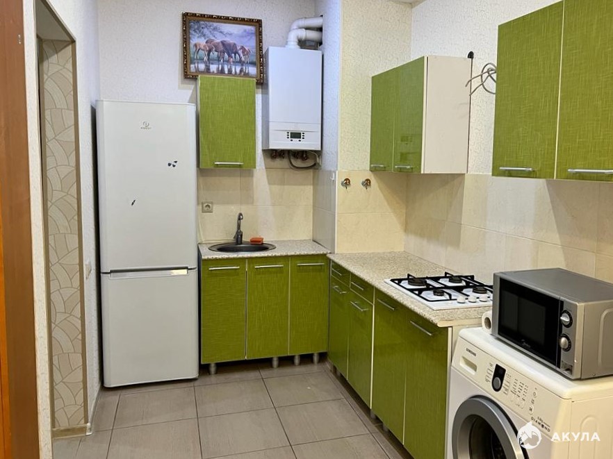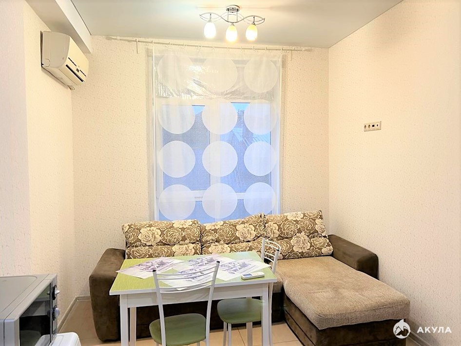 Однокомнатная квартира: спальня плюс кухня - студия в собственности с момента постройки дома. Домофон. Отопление - теплые полы и горячая вода за счет газового котла (природный газ). Вся мебель и бытовая техника остается. Заходи и живи.