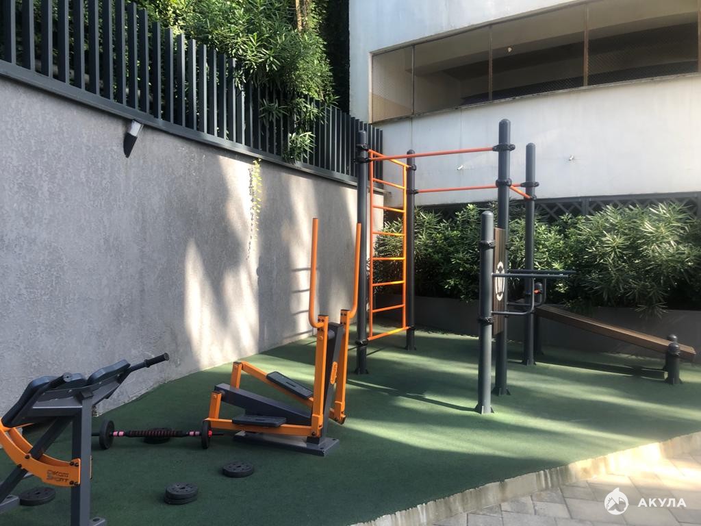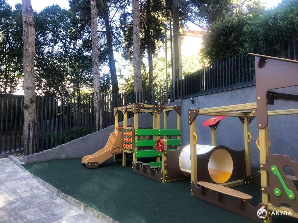На территории дома расположена зона отдыха, детская площадка, вся территория будет облагорожена лучшими специалистами по ландшафтному дизайну города Сочи.