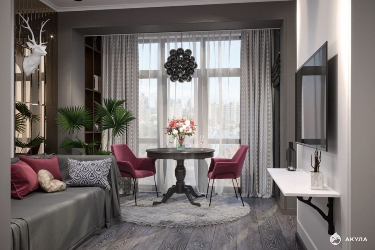 К продаже представлена 1-комнатная квартира, имеющая два окна и балкон. На фото представлен дизайн-проект ремонта.