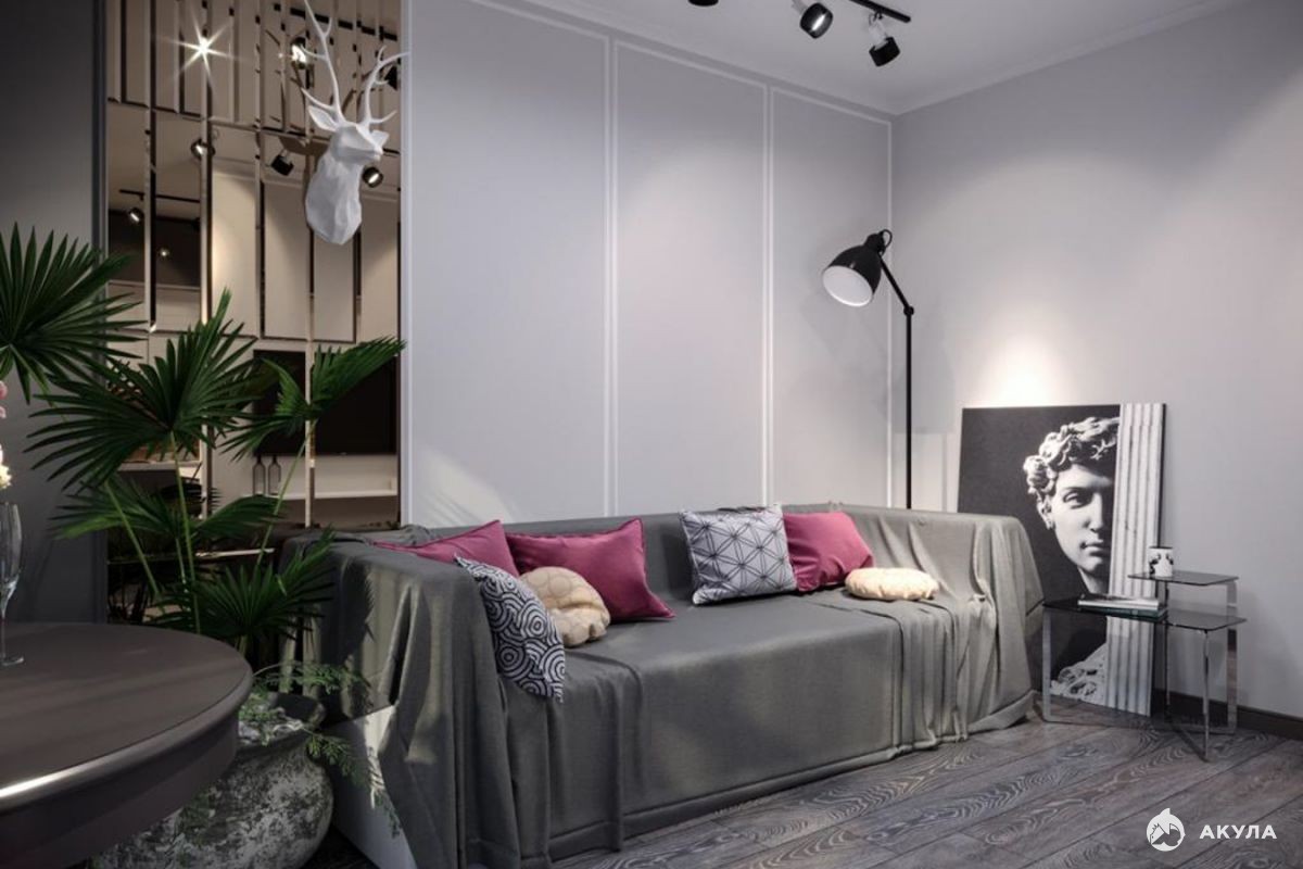 К продаже представлена 1-комнатная квартира, имеющая два окна и балкон. На фото представлен дизайн-проект ремонта.