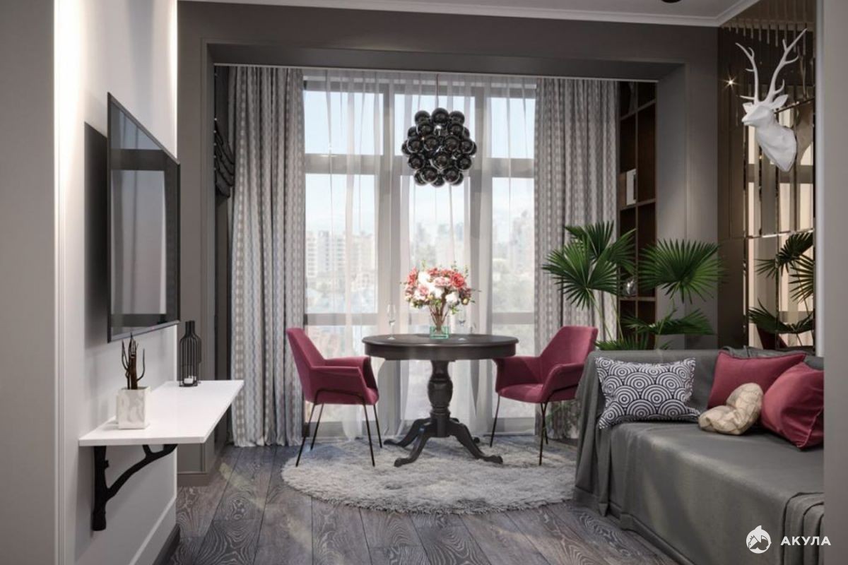 К продаже представлена 1-комнатная квартира, имеющая два окна и балкон. На фото представлен дизайн-проект ремонта.