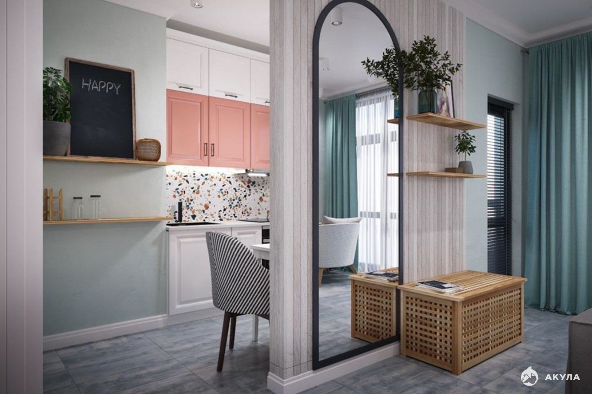 К продаже представлена 1-комнатная квартира, имеющая два окна и балкон. На фото представлен дизайн-проект ремонта.