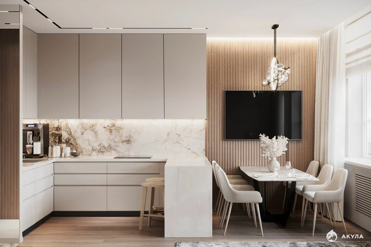Квартира свободной планировки, с балконами. На фото представлен пример ремонта. Из всех квартир открывается прекрасный вид на море.