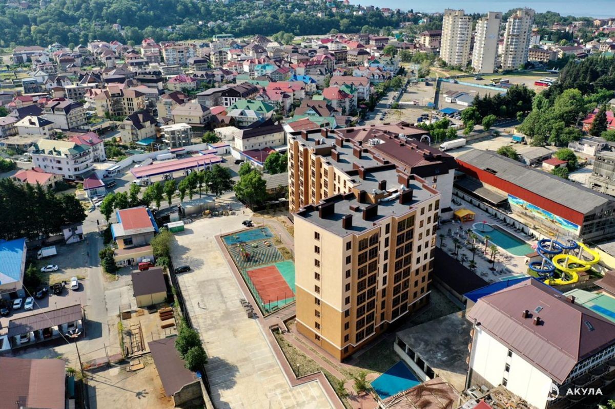 На придомовой территории находятся детская площадка, зона отдыха, свой кинотеатр под открытым небом, беседки, спортивные площадки. Есть придомовой паркинг на 100 машиномест.
