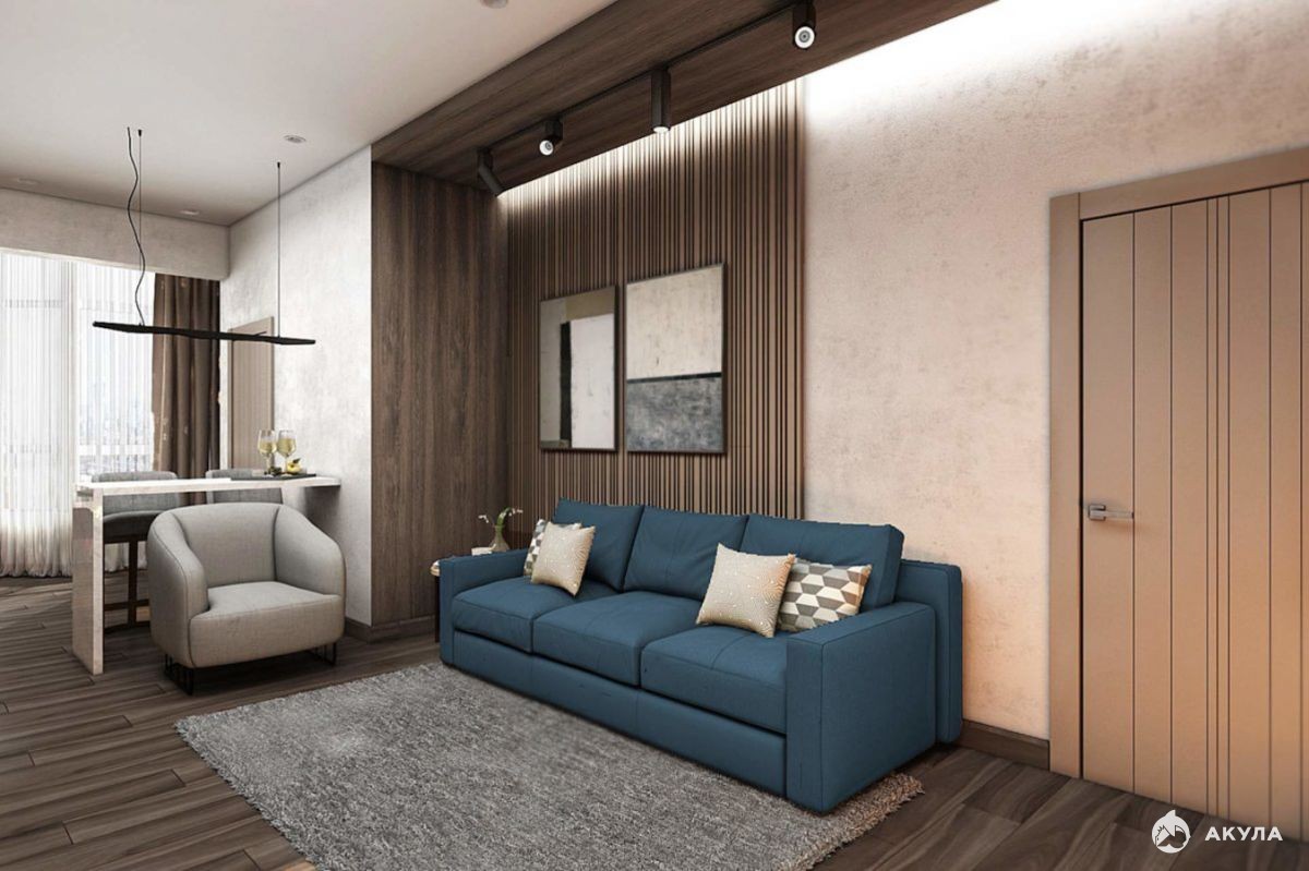 Квартира с выделенным сан.узлом, свободная планировка. На фото представлен дизайн-проект ремонта.