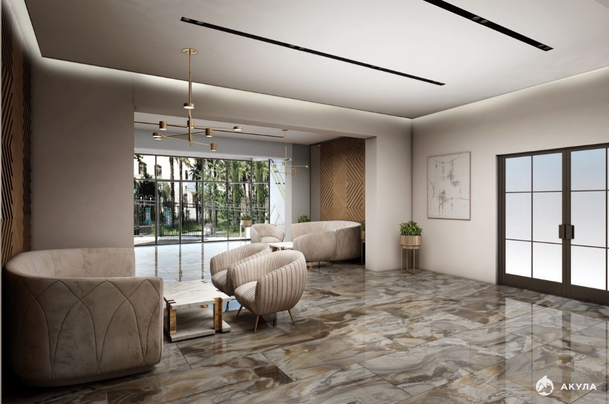 Апартаментный комплекс представляет собой два жилых корпуса с панорамным остеклением, с открытыми террасами, с балконами и без (с возможностью размещения дополнительного спального места). Комплекс отличает современный дизайн, уют и функциональность.