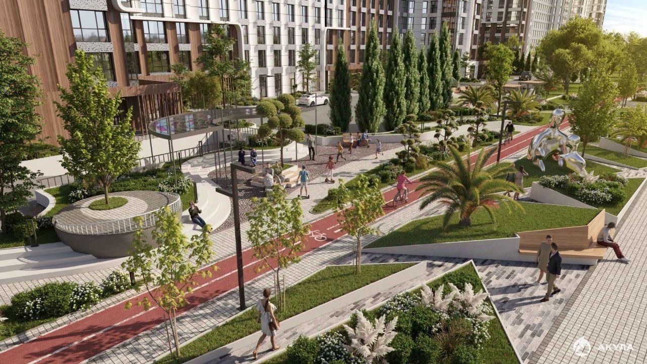Общественное пространство жилого комплекса включает в себя прогулочные зоны, спа-комплекс с круглогодичным бассейном, детские и спортивные площадки, велодорожки, собственную набережную реки Сочи, торговую галерею с супермаркетами и ресторанами, а также инновационную школу на 1510 мест и детский сад на 510 мест. Идеальный вариант как для жизни у моря, так и для инвестиций.