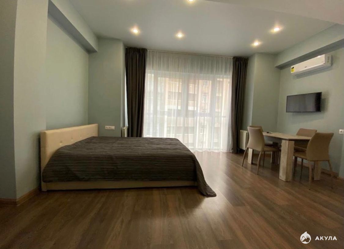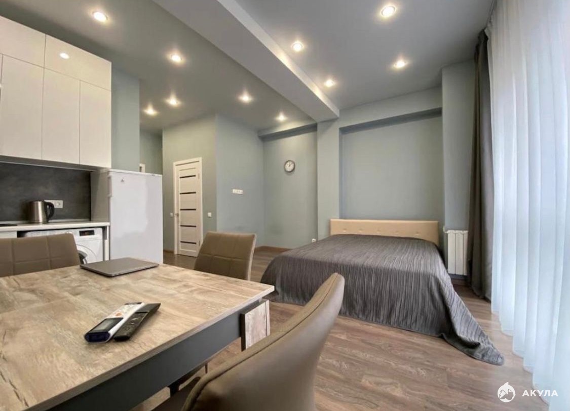 1-комнатную квартира - студия. Площадью 33 кв. м на 10 этаже 13 этажного дома. Комплекс бизнес класса расположен в районе Мамайка на первой береговой линии у моря. В квартире делали ремонт для себя. Качественный ремонт, мебель, техника.