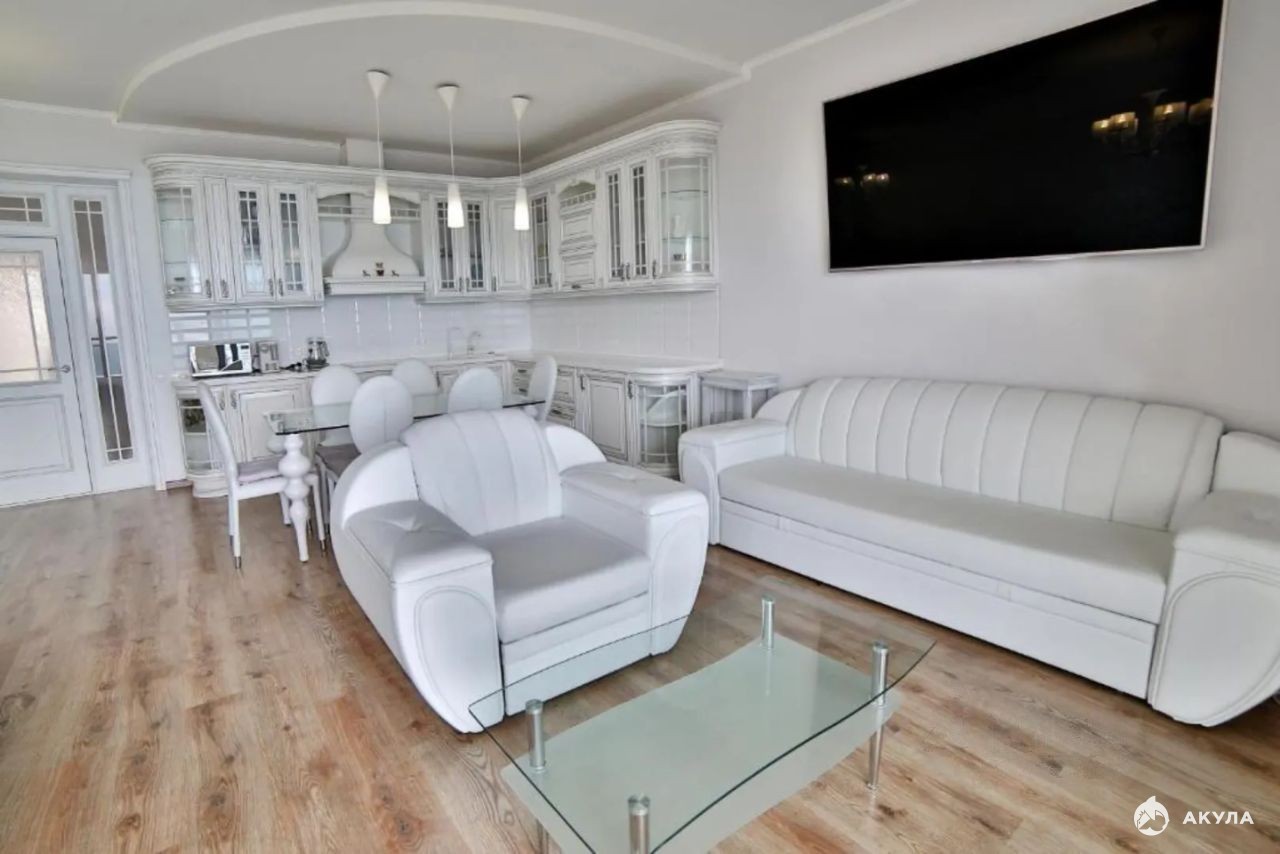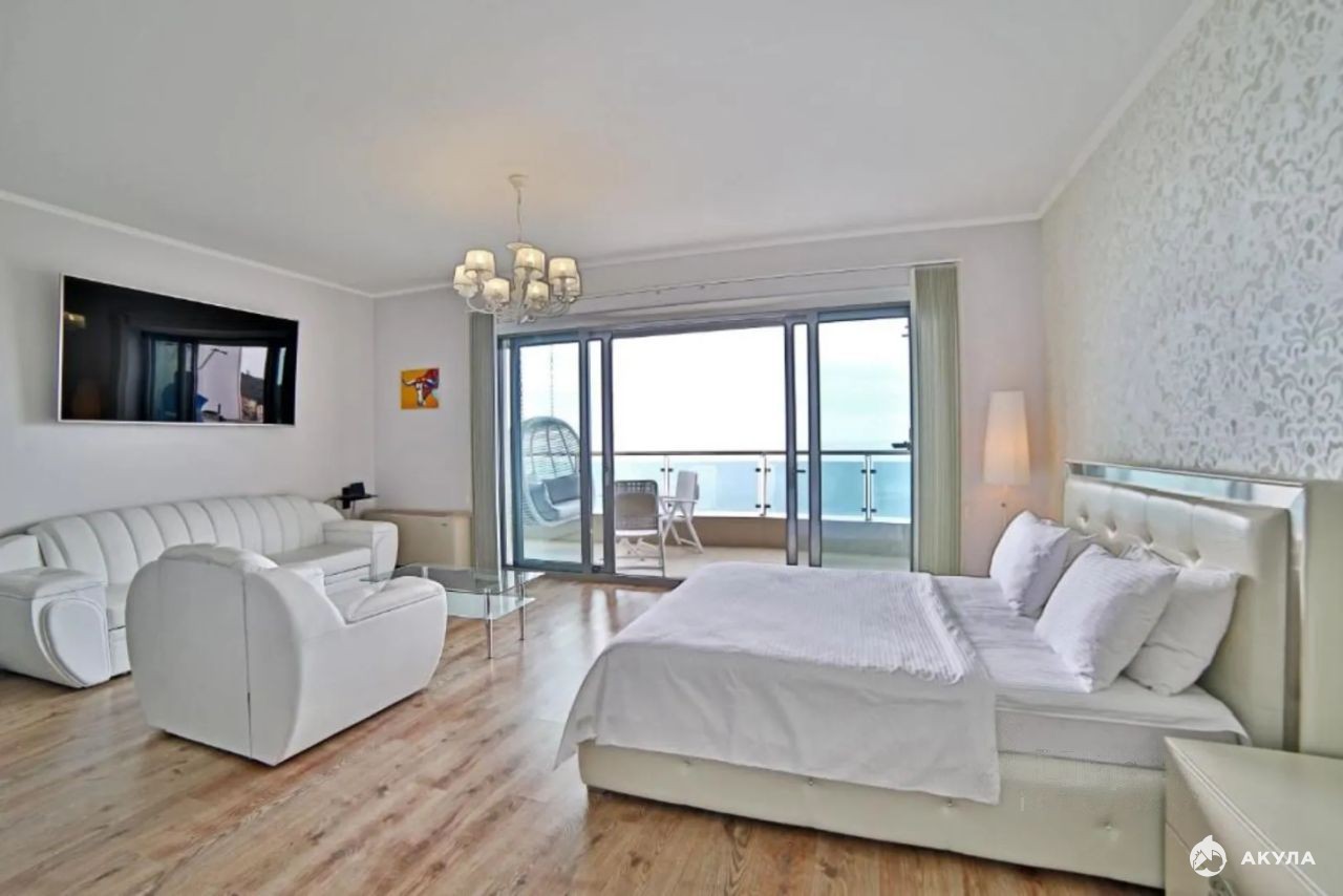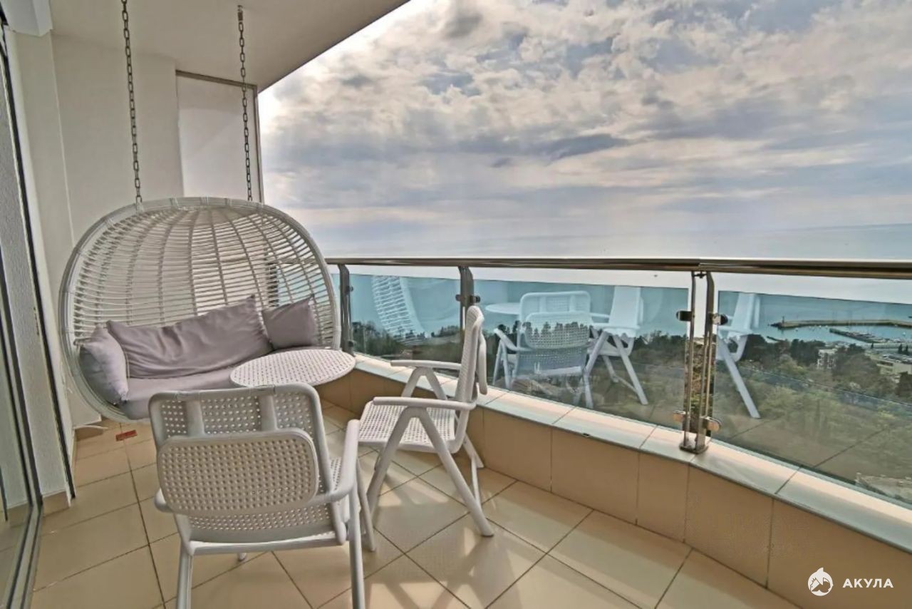 Просторная кухня гостиная с продуманной зоной готовки и зоной тв, двуспальная кровать от куда открывается красивый вид на море, большая терраса, коридор, совмещенный санузел. Все комнаты укомплектованы мебелью и техникой именитых брендов, по всей квартире теплый пол, панорамное остекление, центральные коммуникации.