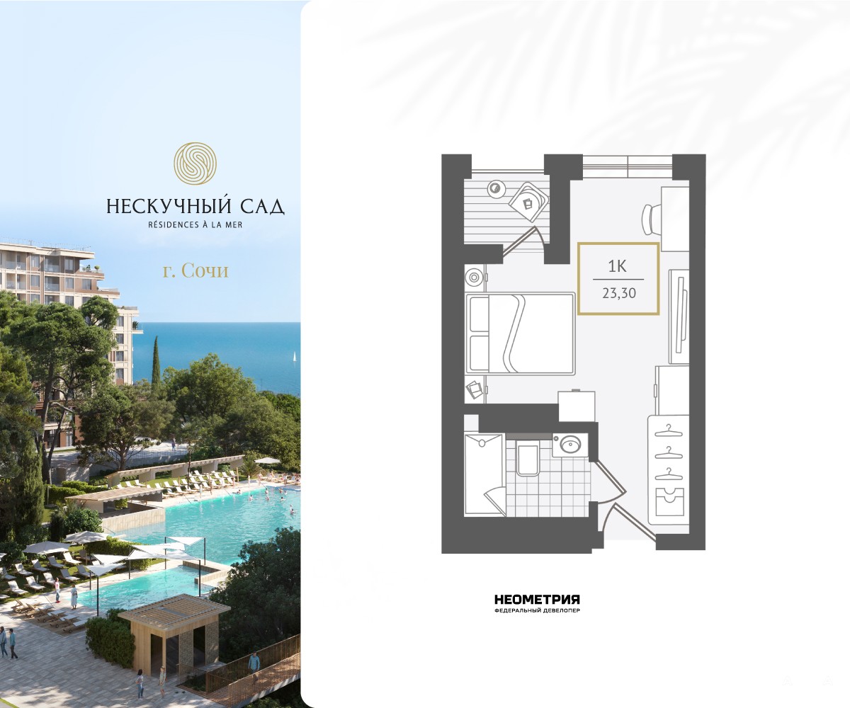 Продаются 1-комн. апартаменты-студия от застройщика с отделкой в Гостиничный комплекс «Нескучный сад» на 7 этаже. Общая площадь: 23.4 кв.м., площадь гостиной 15 кв.м., из которых 5 кв.м. выделено под кухонную зону. Все окна выходят на одну сторону. В апартаментах один балкон, один совмещенный санузел. Высота потолков 2.7 м.