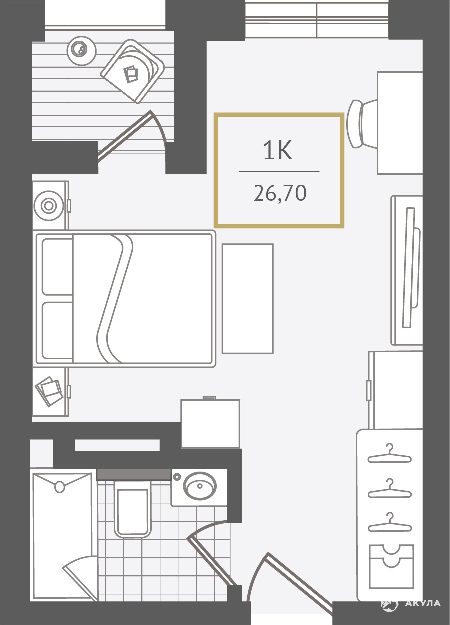 1-комн. апартаменты от застройщика в Гостиничный комплекс «Нескучный сад» на 4 этаже. Общая площадь: 26.9 кв.м. Высота потолков 2.7 м.