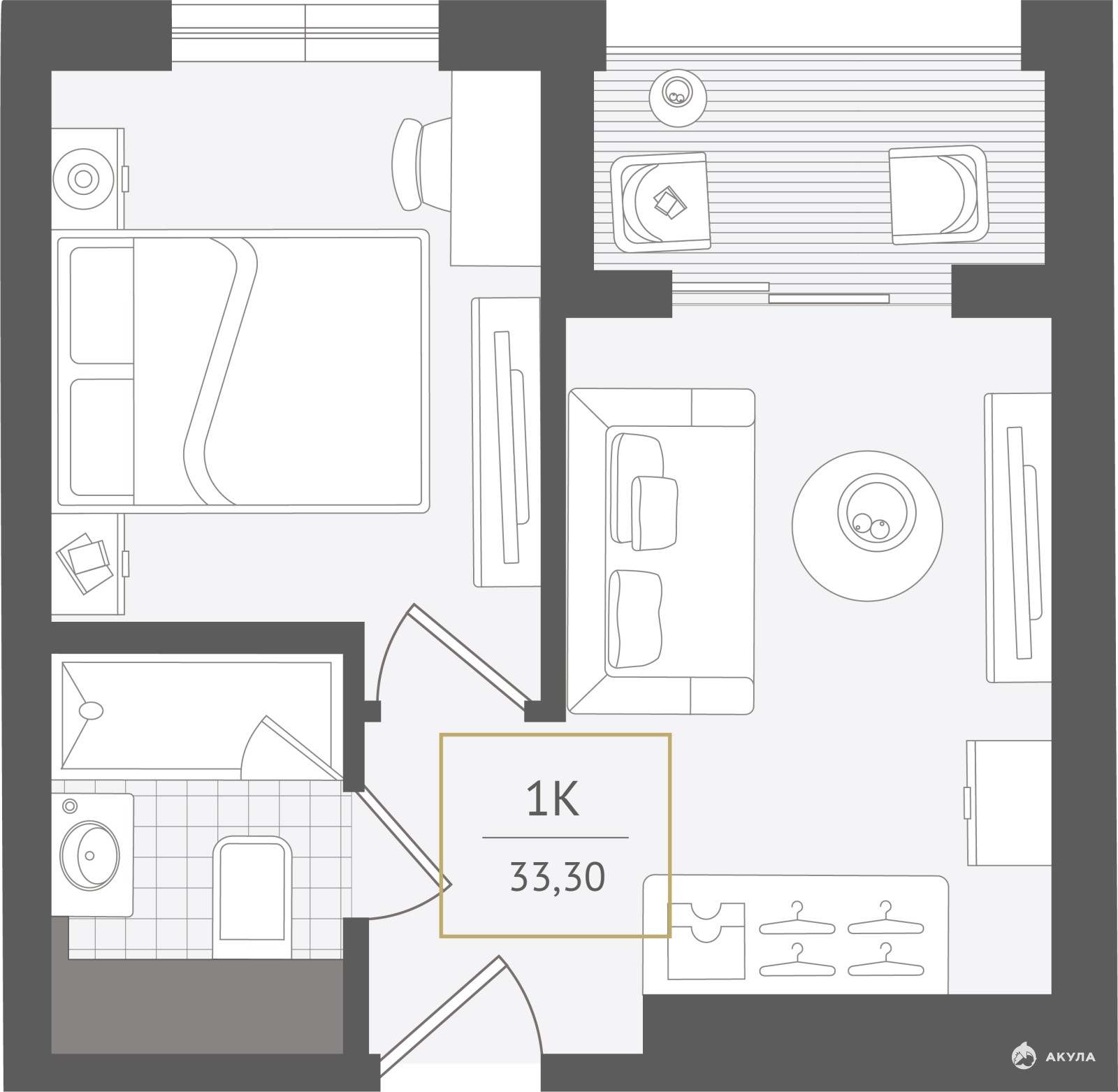 1-комн. апартаменты от застройщика в Гостиничный комплекс «Нескучный сад» на 3 этаже. Общая площадь: 33.3 кв.м. Высота потолков 2.7 м.