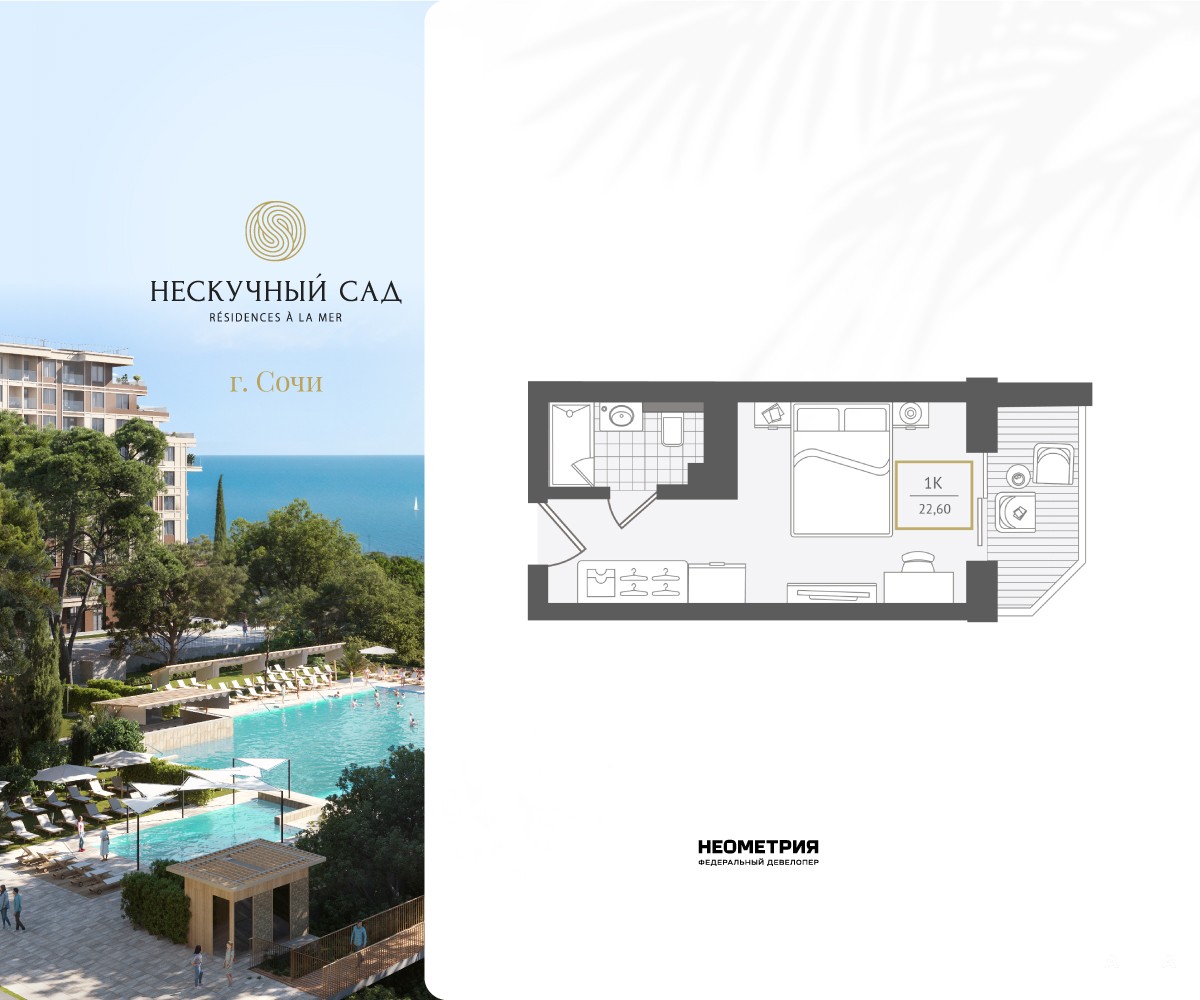 Просторные однокомнатные апартаменты-студия с отделкой в Гостиничный комплекс «Нескучный сад» на 9 этаже. Общая площадь: 22.8 кв.м., площадь гостиной 15 кв.м., из которых 5 кв.м. выделено под кухонную зону. Все окна выходят на одну сторону. В апартаментах один балкон, один совмещенный санузел. Высота потолков 2.7 м.