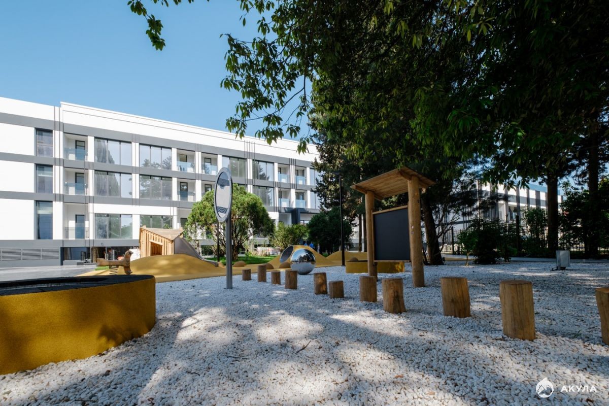 Преимуществом комплекса является собственная благоустроенная территория с ландшафтным дизайном, зонами отдыха, SPA, бассейном и фитнес-центром.