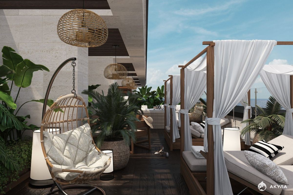 Инфраструктура комплекса: фитнес зал, spa -комплекс, открытые бассейны, прачечная, ресторан, конференц-зал, детские игровые зоны, оборудованный пляж. Прогуливаясь по парковой территории АК «Лучезарный», где растут многолетние сосны и кипарисы, Вы можете насладиться красотами окружающей природы, свежим морским воздухом и любоваться на великолепные закаты. С услугой консьерж-сервис Вам не надо задумываться о порядке и безопасности ваших апартаментов во время вашего отъезда.