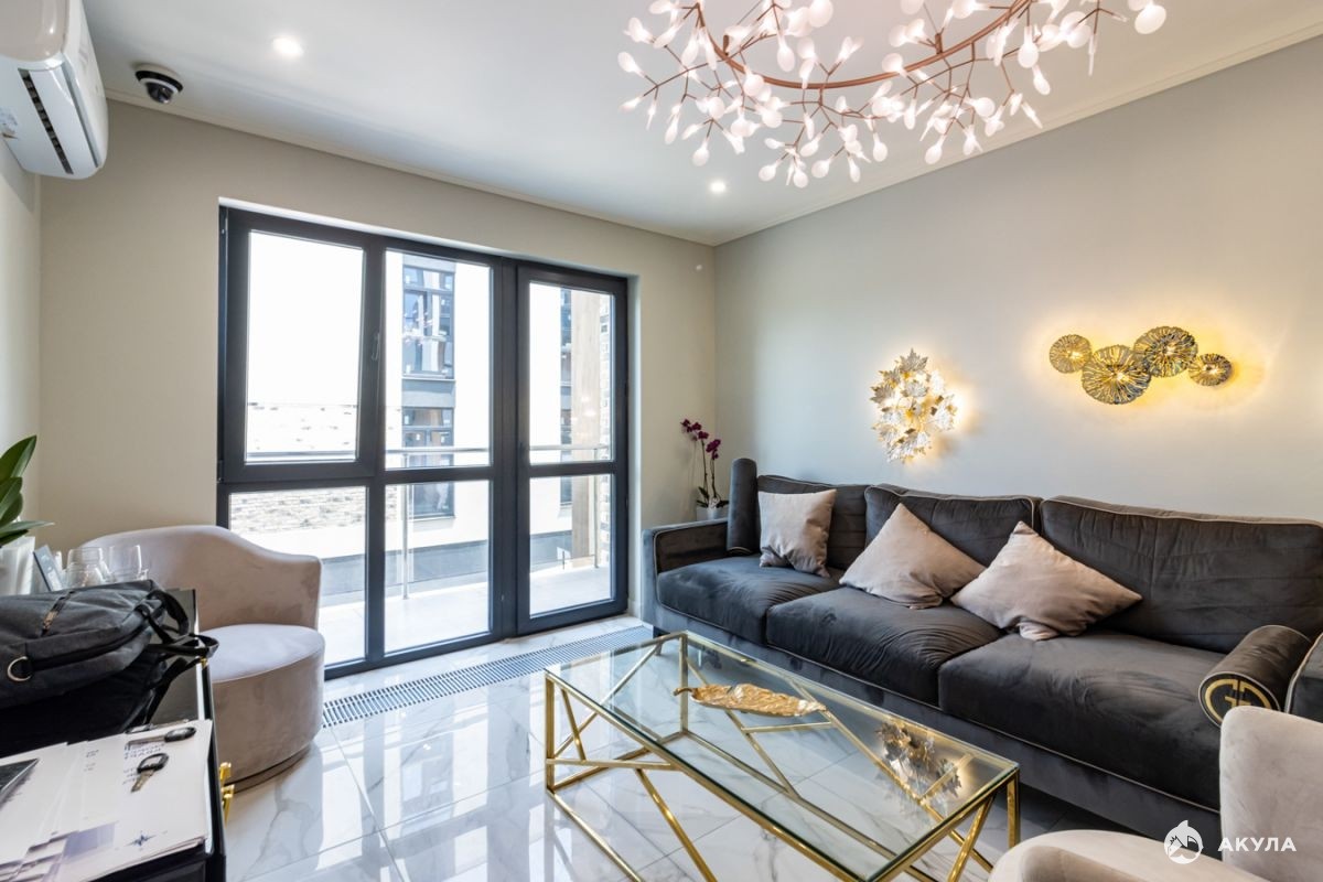 Квартира свободной планировки, с высотой потолка 3 м. Из окон открывается красивый вид на зеленые массивы. На фото представлен пример ремонта.