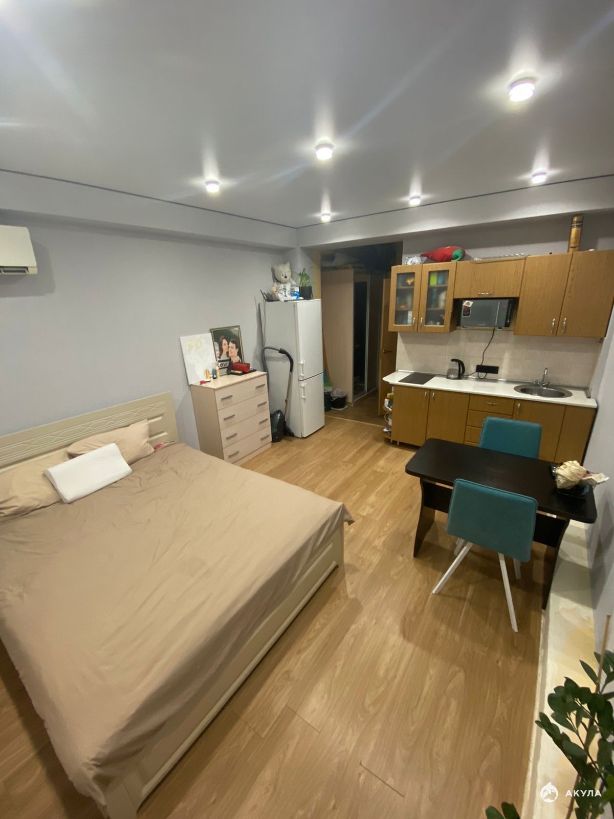 В продаже уютная студия в новом доме в районе верх Светланы с ремонтом, мебелью и техникой.
