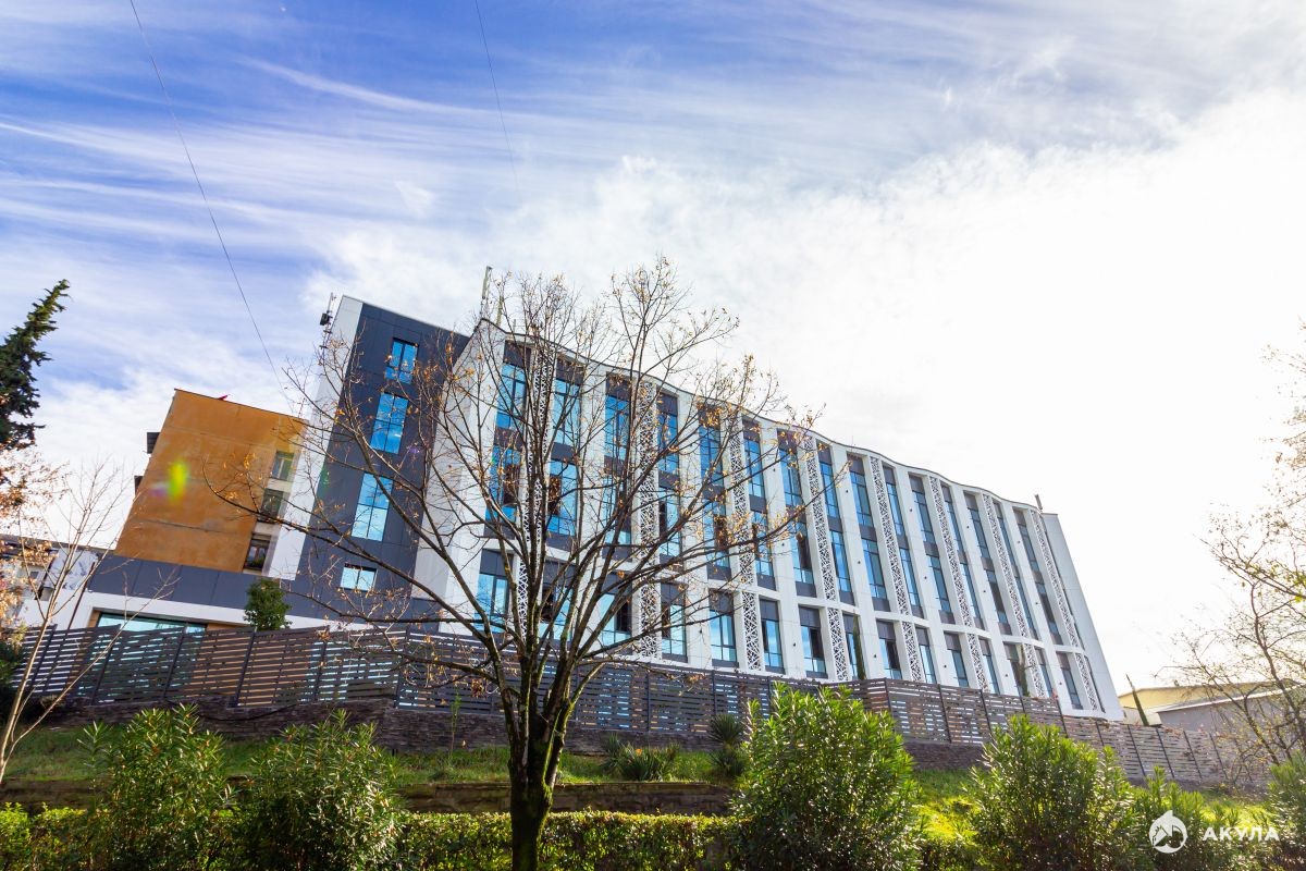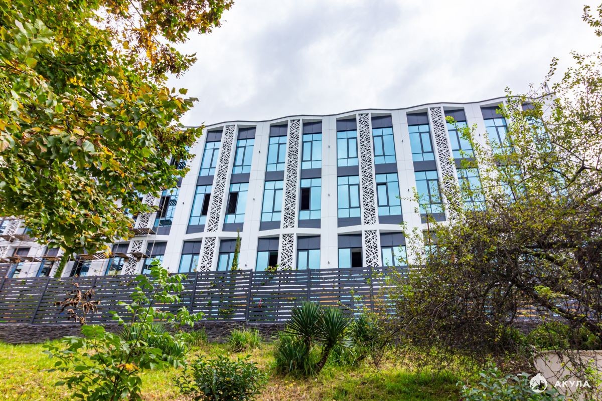 В апартаменте большие панорамные окна с витражным остеклением, из которых открывается вид на парковую зону, город и море.