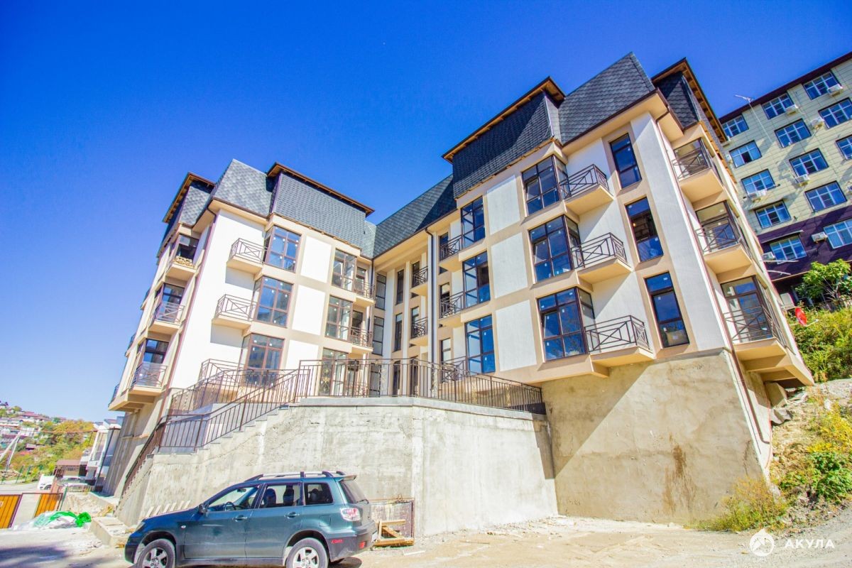 Панорамное остекление, балкон, детская площадка, бесплатная придомовая парковка и городская инфраструктура в шаговой доступности — отличный вариант для отдыха и проживания на курорте.