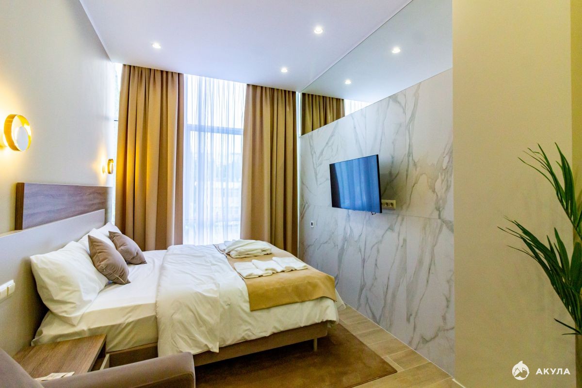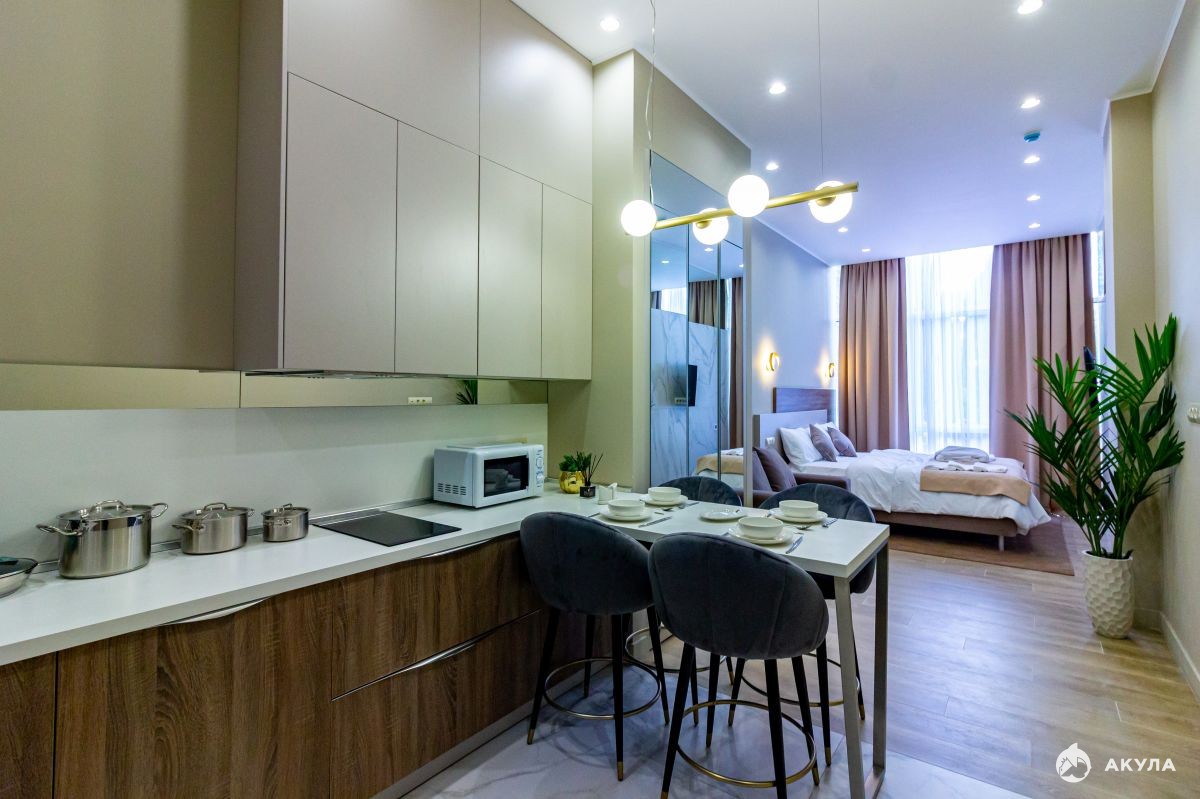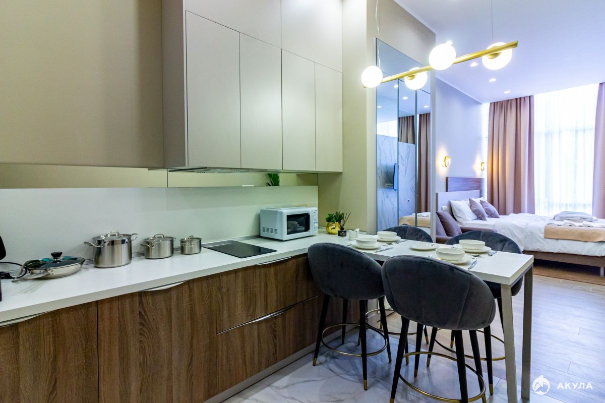 Апартаменты представлены с премиальной отделкой и панорамным остеклением.