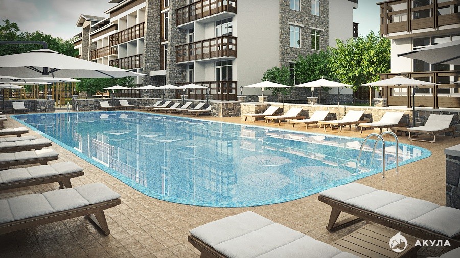Преимущество, которое заслуживает обособленного внимания – выгодное расположение. Комплекс находится в непосредственной близости от курортов Красной поляны. ЖД вокзала, Казино. Инфраструктура здесь очень хорошо развита. Рядом – супермаркеты, автобусные остановки. Добраться до побережья можно всего за полчаса по новой скоростной магистрали.