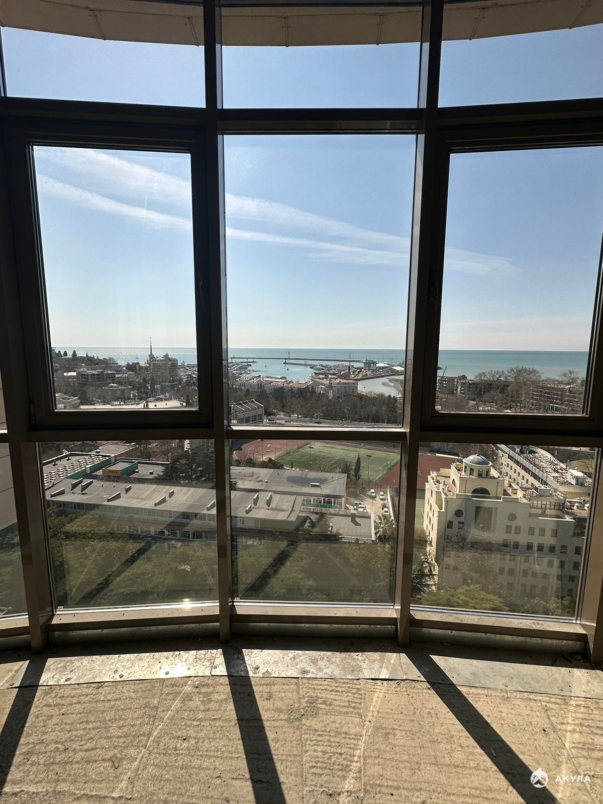 ПЕНТХАУС со свободной планировкой и черновой отделкой, но с головокружительным видом на морскую гавань, горы и весь центральный район. Сочи как на ладони.