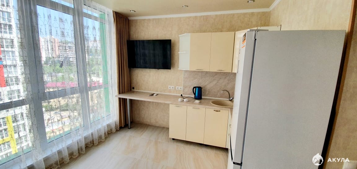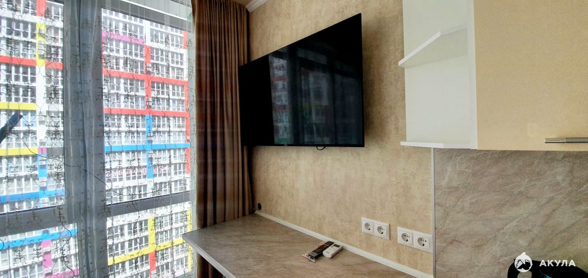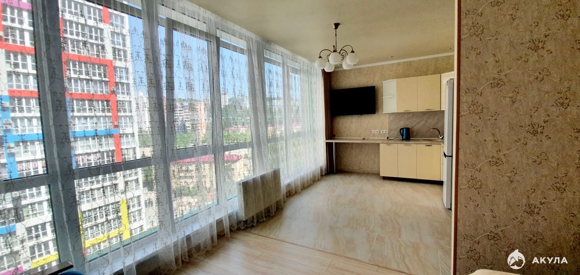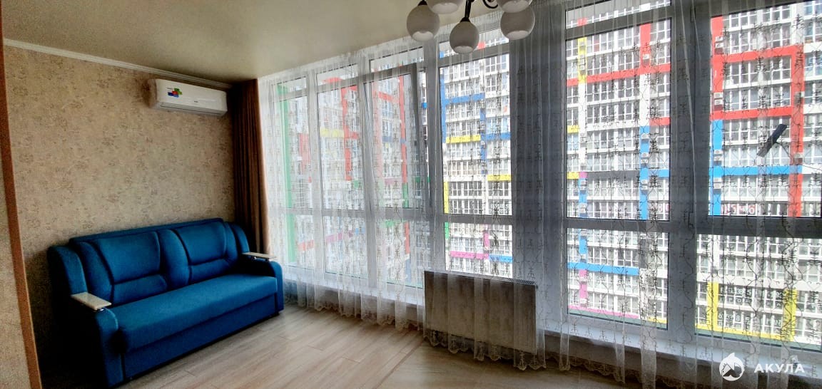 Квартира в современном новом комплексе! 37м2, распланирована в спальню, кухню-гостиную, гардеробную и санузел. В квартире выполнен новый ремонт из качественных материалов, никто не жил! Высокие потолки, панорамное остекление, вид во двор!